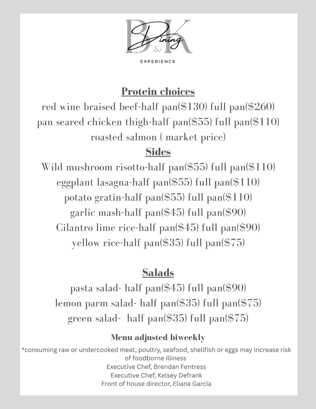 Discover a world of culinary possibilities with B&K Dining Experience. Browse our sample menus and find the perfect inspiration for your next private dining event. We cater to a variety of tastes and dietary needs, ensuring a memorable and flavorful experience for you and your guests.